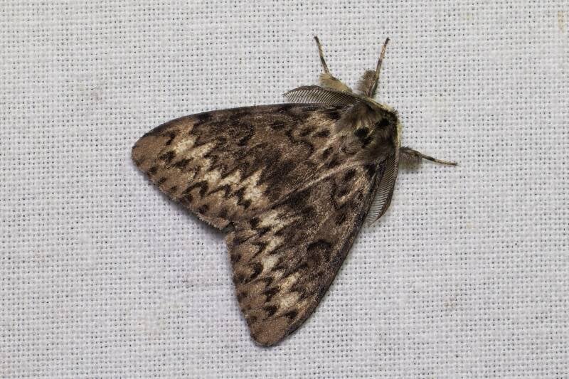 Een vrij zeldzame nachtvlinder. Pas een van de eerste waarnemingen dit jaar. Hij ziet er grappig uit met zijn sterk behaarde poten en staartje dat omhoog staat. Hij was eenvoudig bereid om op een papiertje te gaan zitten.
