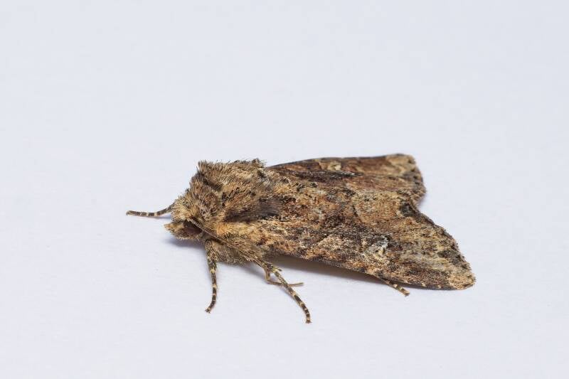 Deze uil heeft een prachtig patroon op de vleugels met al de lichte lijnen. Een foto recht van boven is dan een goede keus. Ook de poten en voelsprieten staan mooi.