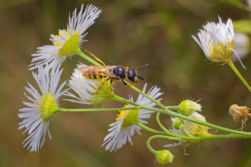 Een solitair levende wesp die voornamelijk bijen eet. Ze eet zelf de nectar die ze uit de bij perst en plaatst de bij als voedsel bij haar eitjes.