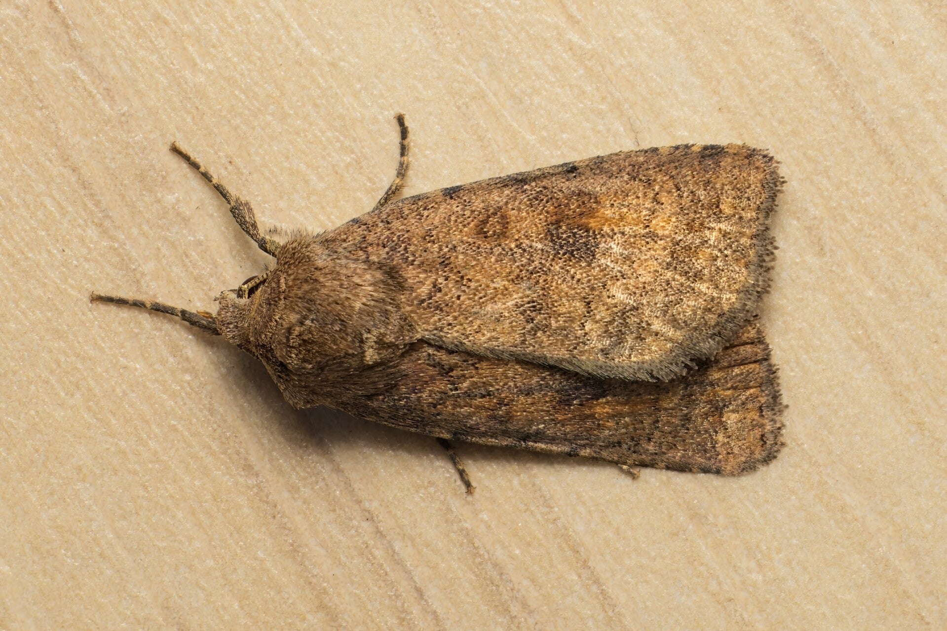Deze nachtvlinder komt niet vaak op licht af maar wel op stroop. Het is geen mooie foto, maar hij is wel zeldzaam.
