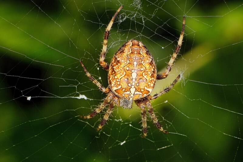 Deze spin is vanaf de onderkant gefotografeerd. Helaas zitten veel spinnen aan de achterkant van het web. Het voordeel van deze foto is dat je de poten heel goed kunt zien.