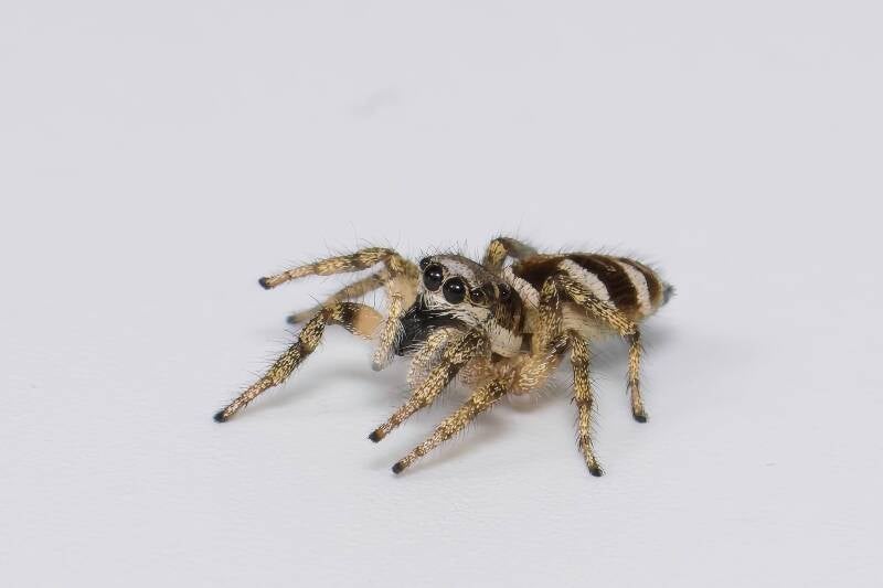 Springspinnen zijn altijd zo fotogeniek. Maar ze blijven vaak niet stilzitten. Deze foto koste heel wat moeite om scherp te krijgen.