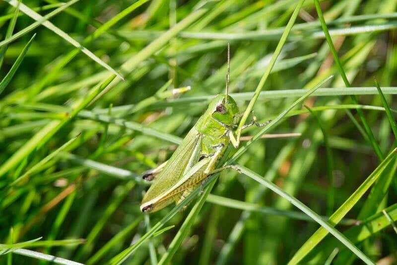 Dit is een jonge sprinkhaan (nimf) die nog geen vleugels heeft.